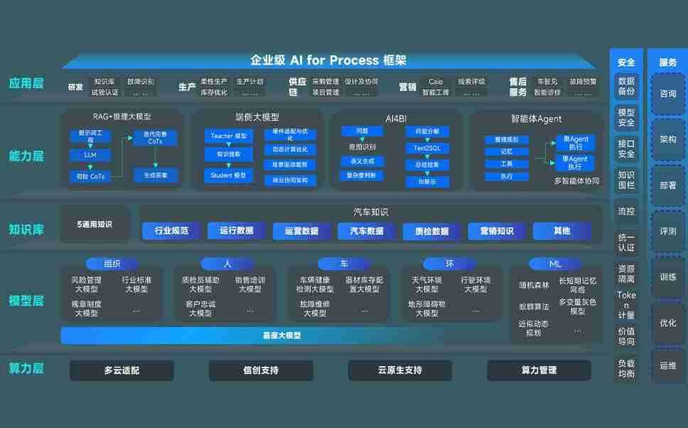 AG尊龙凯时问学智车解决方案是一套基于AI技术的汽车行业智能化系统,,,覆盖从底层算力到顶层AI应用的全栈方案。。。方案由算力层、、、、模型层和应用层组成:算力层,,,方案支持多种一体机配置,,,具备云端灵活部署、、、多云适配以及动态优化计算资源的能力;模型层,,,AG尊龙凯时问学平台版提供了企业级AI应用一站式构建与管理平台,,,,支持基于后训练强化技术的汽车企业专属模型的训练、、、、评测和运营;应用层,,,AG尊龙凯时问学DeepSeek版提供包括超级员工、、、、智能招采、、、智能营销、、、、智能客服、、、、AI for BI等一系列解决方案,,,可助力汽车行业实现数字化转型,,,让管理更智能、、、响应更敏捷。。